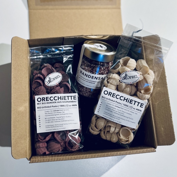 1 Randensalz, 1 Bio-UrDikel-Pasta Randen-Orecchiette 150g, 1 Bio-UrDikel-Pasta Orecchiette 150g